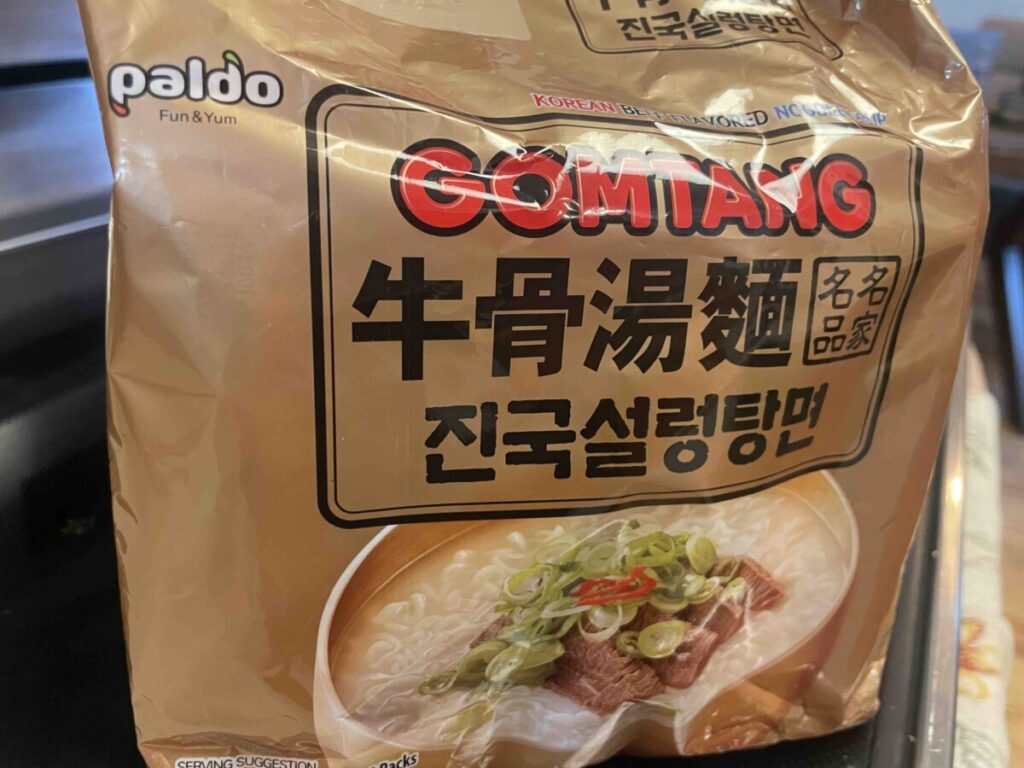 There are also a few beef bone-based ramen. Koreans love beef bone soups because the flavor is deep and rich. These ramen aren’t spicy, and if you’ve had Seolleongtang or Gomtang before, you’ll know what to expect. Sarigomtang is the most famous beef bone ramen. They’re popular because you can use them in a lot of recipes — I’ll share some later.
