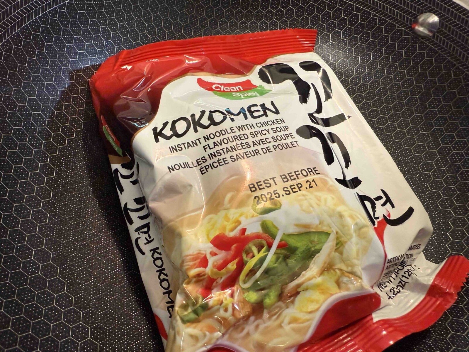 This one is based on chicken broth. It’s pretty rare among Korean ramen because it’s not the usual red ramen — it’s white. Still, it’s spicy, but not the red chili kind of spicy. If you like chicken-based ramen and also enjoy some heat, this is a great choice.